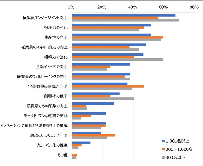 「人的資本経営」に取り組む目的、「従業員エンゲージメント向上」が最多
