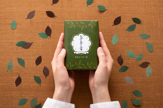ころんと可愛い「茶茶音」をおさめる専用パッケージには、お茶をモチーフとした優しい意匠をあしらいました。行李(こうり)を思わせるようななだらかなフォルムの専用箱は、ご自宅用はもちろん、ちょっとした手土産や、お配りギフトにもぴったり。