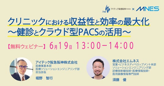 医療支援クラウドサービス LOOKREC (※1)を提供する株式会社エムネス(所在地:広島県広島市、代表取締役社長:阿部 伸一)は、アイテック阪急阪神株式会社と共催し「クリニックにおける収益性と効率の最大化~健診とクラウド型PACSの活用~」を、2025年6月19日(木)に開催いたします。