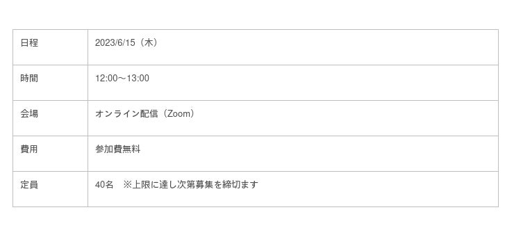 2023/6/15(木)12:00~13:00