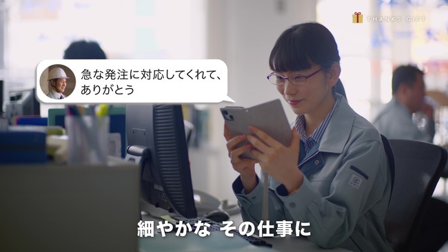その他のシーンでは、実際のTHANKS GIFTのユーザーの声を反映し、