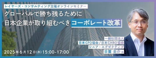 株式会社レイヤーズ・コンサルティング(東京都品川区、代表取締役CEO:杉野 尚志、以下:レイヤーズ)は、オンラインセミナー『グローバルで勝ち残るために 日本企業が取り組むべきコーポレート改革』を2025年6月12日(木)に開催することを発表いたします。