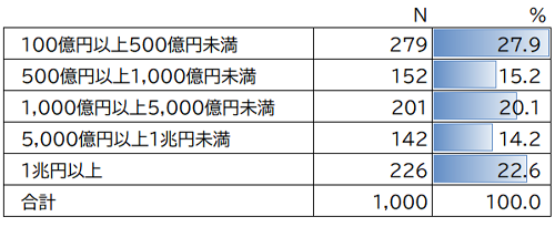 対象企業:直近1年間の売上高が100億円以上の企業1,000社