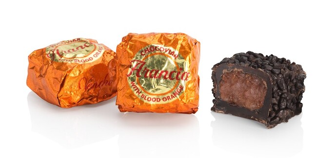 自然なほろ苦さと甘さのブラッドオレンジのペーストが、ダークチョコレートの強さをほどよく調和しています。