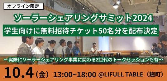 千葉大学発ベンチャー企業で2013年より営農型太陽光発電(ソーラーシェアリング)に取り組み、国内外で450件以上のコンサルティング実績を持つ千葉エコ・エネルギー株式会社(本社:千葉県千葉市、代表取締役:馬上丈司)と神奈川県内で6つのソーラーシェアリング設備を保有し、耕作放棄地の解消や再生可能エネルギーの普及促進に取り組む合同会社小田原かなごてファーム(本社:神奈川県小田原市、代表社員:小山田大和)が2024年10月4日(金)に共同主催で開催する「ソーラーシェアリングサミット2024」にて、無料招待枠として学生向けの参加枠50名分を設けることが決定しました。