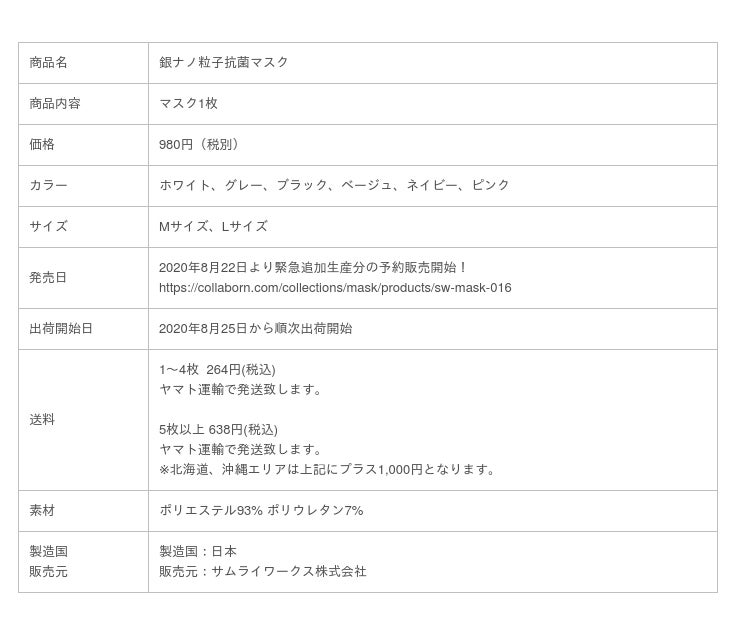 原価マスクやナノクール抗菌マスクを展開するサムライワークス株式会社(代表取締役社長:新島 実 本社所在地:東京都渋谷区)は、大人気の日本製3D洗えるニットマスクに、銀ナノ粒子を練り込んだ糸を使用し、優れた抗菌効果を維持し、清潔で快適な、日本製の「銀ナノ粒子抗菌マスク」を緊急追加生産による予約販売を開始します。