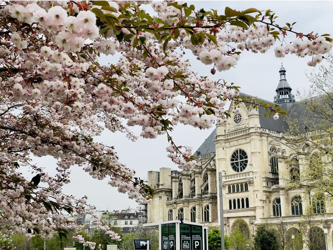 新旧の文化が融合するレ・アール地区。広場には桜が咲き誇り、パリで最も壮麗な教会ともいわれる「サン・トゥスタッシュ教会」や、安藤忠雄氏が改装を手がけた美術館「ブルス・ドゥ・コメルス」の外観も見ることができます。パリっ子の憩いの場で、桜ほころぶパリの穏やかな昼下がりをご堪能ください。