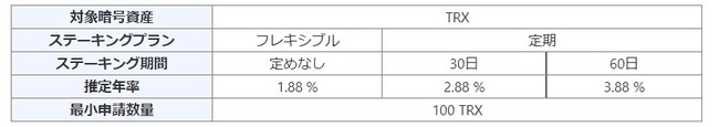 また、2022年8月24日時点で、TRXのステーキングサービスは国内取引所において初となります。(※自社調べ)
