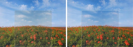 ポジカ(R)くっきり(TM)フィルムが耐熱結晶化ガラス特有の色調を調整することで、ガラス越しの色彩がより自然で鮮やかに見えます。