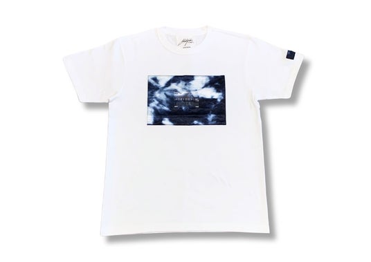 澄み渡る青空をイメージした特殊タイダイ染めが施されたサテン地で表現。その素材をTシャツのフロント部分に大きく施しました。煌めきと艶のある生地感はここにしかない清涼感を演出します。