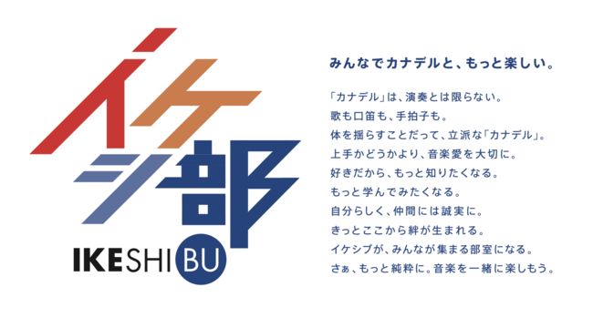 株式会社池部楽器店(東京都千代田区 代表取締役社長 田中 義章)は、2022年9月より、全国の学生バンドを応援する新企画「イケシ部」をスタートいたします。昨今、コロナ禍の影響を受けて厳しい状況下にある学生たちに向けて、心の健康に役立つ楽器演奏を啓蒙しつつ、彼らのバンド活動をさまざまな角度からサポートしていく活動です。「イケシ部」の詳細は、7月18日(月・祝)に開催する「カナデルチカラの日発表会ライブ」でもご紹介させていただく予定ですので、ぜひご視聴ください。