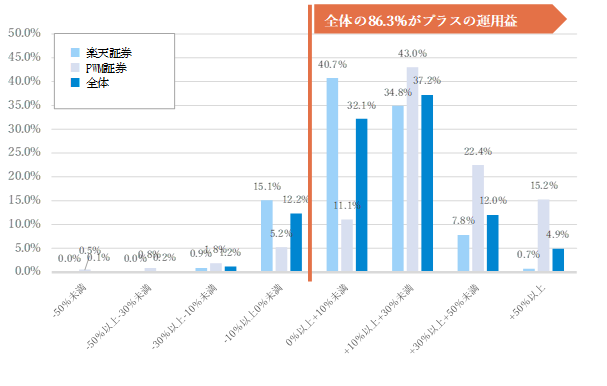 ▽投資信託における運用損益別顧客比率(2022年3月末時点)
