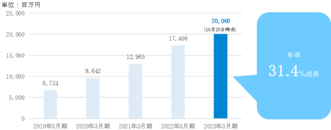 当社が仲介する金融商品の預かり資産残高は直近5か年で年率31.4%で成長しており、2022年10月20日時点で200億6,044万円となりました。