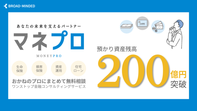 「金融の力を解き放つ」をパーパスに掲げ、保険・証券・住宅ローンと複数の金融商品を横断して1社で取り扱い、人々のライフプラン実現をサポートするブロードマインド株式会社(本社:東京都渋谷区 代表取締役社長:伊藤清 証券コード:7343 以下:当社)では、2022年10月20日時点で当社が仲介する金融商品の預かり資産残高が200億円に到達いたしました。