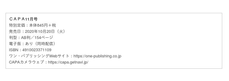 ■ CAPAカメラウェブ:https://capa.getnavi.jp/