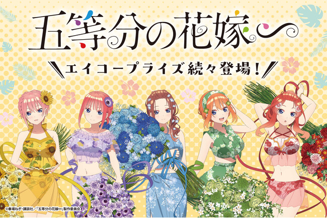株式会社エイコー(本社:東京都墨田区)は、全国のアミューズメント施設(以下:ゲームセンター・オンラインクレーン)におきまして、TVスペシャルアニメ【五等分の花嫁∽】のプライズを2024年6月より順次展開していくことをお知らせいたします。