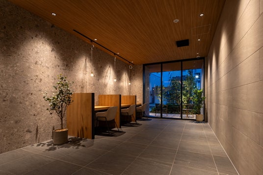 導入物件における「フレッツ 光クロス 全戸加入プラン」と合わせて、「アーバネックス新町II」では、1階エントランスに無料Wi-Fiを設けており、エントランス横の共用ラウンジにてテレワークなどで、マンションにいながらサードプレイスとして心地よく且つ洗練されたインターネット環境をご利用いただくことができます。