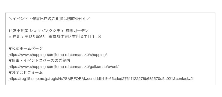 住友不動産商業マネジメント株式会社(本社:東京都新宿区 代表取締役社長:山本 直人)が、運営する複合商業施設「住友不動産 ショッピングシティ 有明ガーデン」(所在:東京都江東区)において実施する、全国各地のご当地グルメや話題のスイーツなど、旬の商品を販売する期間限定ショップの予定をお知らせいたします。