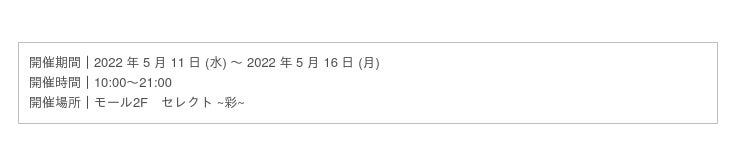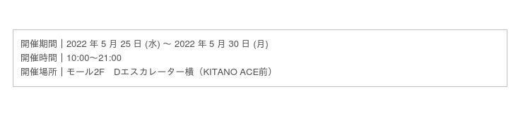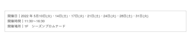 ●2022年5月|開催中・開催予定の期間限定ショップのご案内●