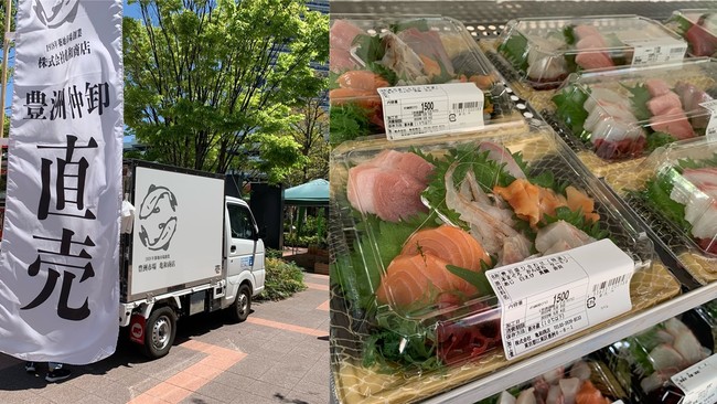 創業83年の豊洲市場水産仲卸が、その日に仕入れた旬の新鮮な魚介類・刺身盛り合わせを直売します。