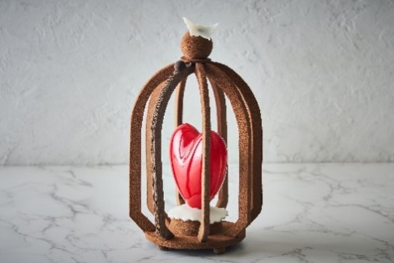 「幸せの扉」を意味する“Porte-Bonheur (ポルトボヌール)”。「愛する人と一緒に扉を開き、幸せを分かち合う」という意味が込められています。かごはダークチョコレート、ハートはホワイトチョコレートで2つのフレーバーがお愉しみいただけます。