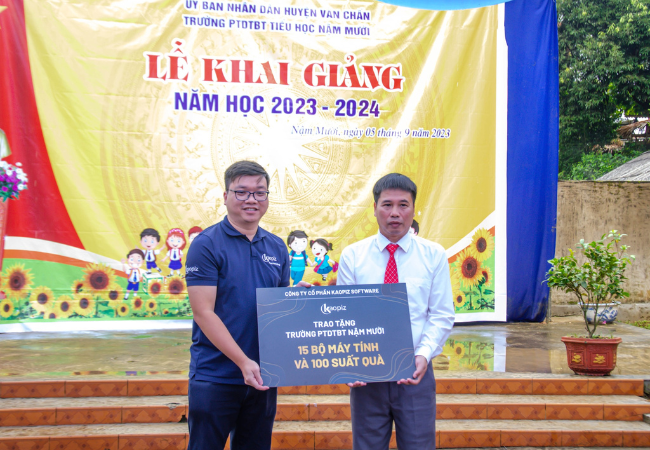 2023年9月4日、カオピーズはナム・ムオイ少数民族高中寄宿制学校にデスクトップ パソコン15 台を寄贈しました。寄贈式は新設された「Phong tin hoc cho em」(学生コンピューター室)にて行いました。