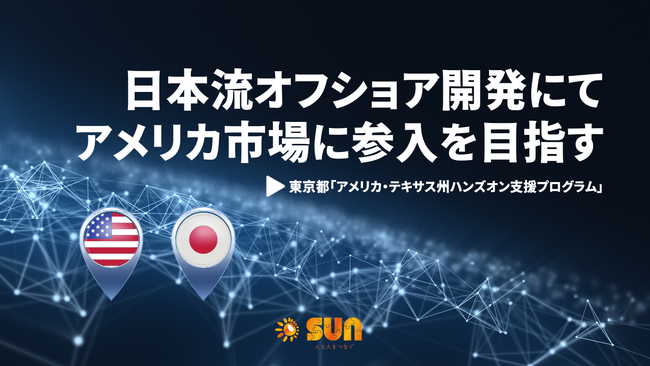 SUN株式会社(本社:東京都港区、代表取締役社長兼CEO:仲宗根俊平、以下 SUN)は、東京都が実施する「都内中小企業のための世界チャレンジプログラム」の「アメリカ・テキサス州ハンズオン支援プログラム」に採択されました。
