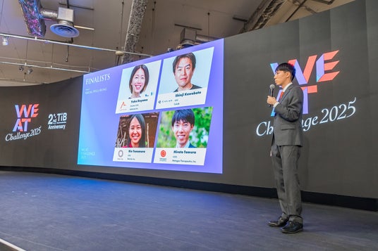 メタジェンセラピューティクス株式会社(本社:山形県鶴岡市、代表取締役社長CEO:中原拓)は、11月27日(木)に開催された、アジア最大級のWell-beingの祭典を目指すピッチコンテスト「WE AT CHALLENGE 2025 (https://we-at.tokyo/challenge/)」にファイナリストとして登壇し、「WE AT AWARD」を受賞したことをお知らせします。