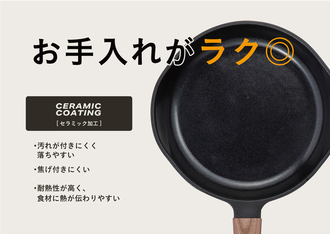 調理中はひっくり返しやすく、調理後はお手入れもラクな“内面セラミック加工”