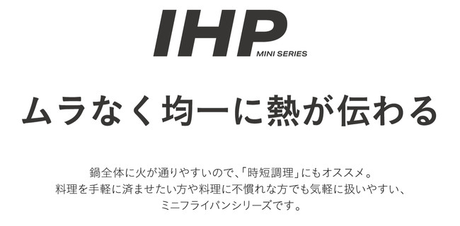 「アルミダイキャスト製」のIH対応ミニフライパンは、フライパン全体に熱が伝わりやすく、