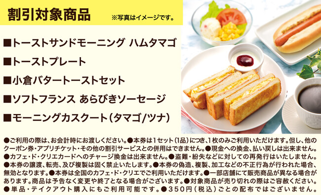 次回ご購入時、モーニング商品が50円もしくは100円引きとなります。