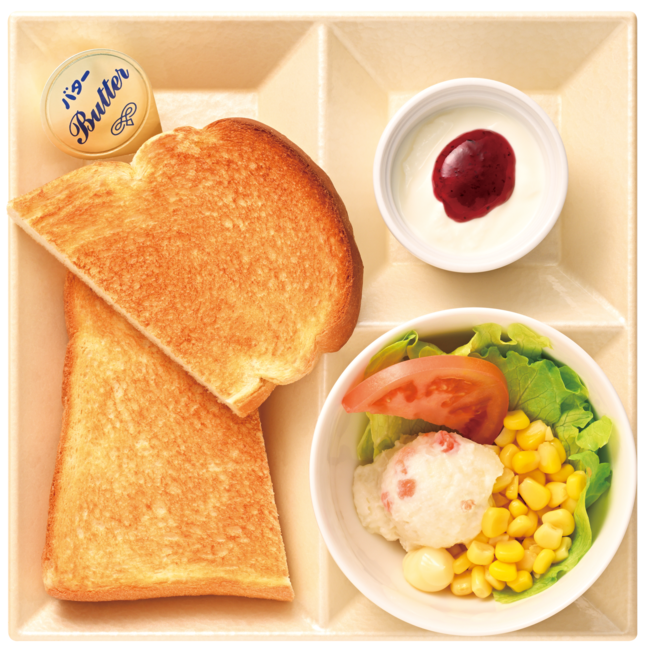 新商品の「トーストプレート」は、オーダーを受けてから焼き上げるサクッと食感のトーストに、バランスを考えたサラダとブルーベリージャムをそえたブルガリアヨーグルトのプレートモーニングです。