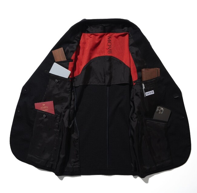 また、肩回りに特殊なメッシュ素材を採用したMOVB独自の「Moving仕様」によって、身体に沿ったスマートなシルエットながら、腕の動かしやすさも実現しています。