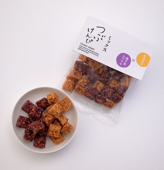 プレゼント限定品『ミックスつぶけんぴ』クラッシュした芋けんぴをころんとひと口サイズに固めた金次郎のオリジナル芋けんぴ、その名も「つぶけんぴ」。いつもは芋けんぴと同じコガネセンガンでつくりますが、今回はプレゼント限定で濃厚な甘さの紅はるかと、さっぱりとした甘さの種子島ムラサキでつくりました。いつものつぶけんぴとはまた違った食感や芋の風味をお楽しみいただける限定品です。