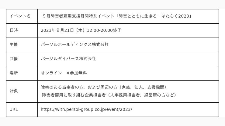 ○申し込み:https://with.persol-group.co.jp/event/2023/ (締切:9月20日(水)18:00)