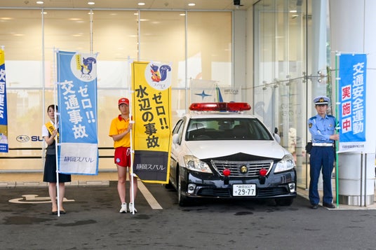 「ライフセーバー、静岡県警清水警察署交通課の皆さまと交通安全旗持ち」@静岡スバル本社前※1