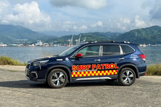 SUBARUフォレスターにラッピングを施し、ライフセーバーカーとして貸与します。本年度はさらに視覚的にわかりやすく 「SURF PATROL」 の文字を配したラッピングとなっています。