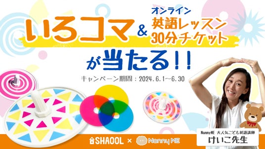 オンラインレッスン/オンライン保育「NannyME」(運営:株式会社七色、代表取締役CEO:佐々木綾香)は、株式会社シャオール(代表取締役:宮地完登)の協賛により、知育玩具「いろコマ」のプレゼントキャンペーンを実施します。