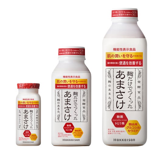【届出表示】本品には麹菌Aspergillus oryzae HJ1株と麹由来グルコシルセラミドが含まれます。麹菌Aspergillus oryzae HJ1株は、腸内環境を整え、便通を改善する機能があります。麹由来グルコシルセラミドは、肌の潤いを守るのを助ける機能があります。