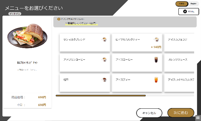 セットメニューのセットドリンクやサイズなどの、対象商品・追加料金が一目でわかり、初めてのお客さまでもスムーズにオーダーが可能です。