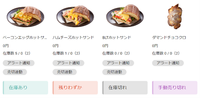 キッチンに通知を飛ばします。サンマルクカフェではベーカリーで本機能を活用。これにより、スタッフは適確なタイミングで追加製造が可能となり、フードロスの削減を実現します。