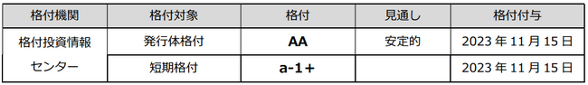 発行体格付は昨年の「AA-」から「AA」へと引き上げとなりました。