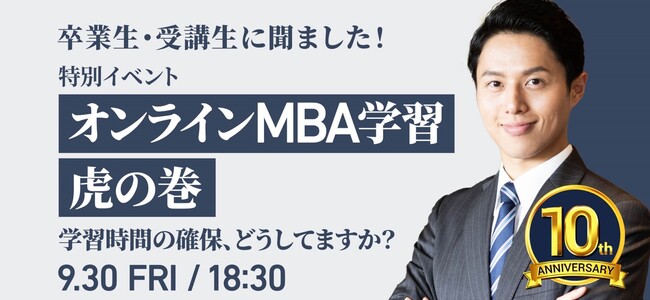 留学不要、完全オンラインで米国MBA(経営学修士)を取得できる「マサチューセッツ大学MBAプログラム」事務局は9月30日、在学中の学習時間の確保に焦点を当てたオンライン特別イベントを開きます。卒業生が仕事や子育てなどと両立しながらどうMBA取得まで歩んだか、アンケートを基に解説します。参加無料。参加予約は、事務局があるパスメイクグループのアビタス(本社東京都渋谷区、代表宇坂純)の公式サイトで予約を受け付けています。https://www.abitus.co.jp/mba/