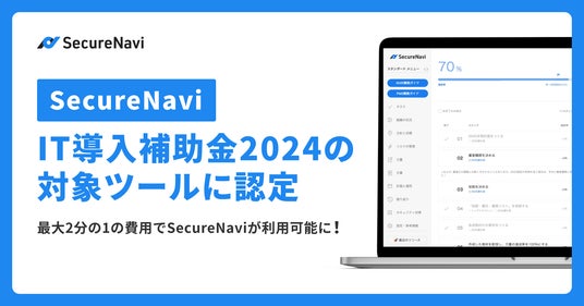 SecureNavi株式会社(本社:東京都中央区、代表取締役CEO:井崎友博、以下当社)が開発・提供するISMS・Pマークオートメーションツール「SecureNavi」は、経済産業省が推進する「IT導入補助金2024」の対象ツールとして認定されました。一定の条件を満たすことで、最大で2分の1の費用補助を受けながらSecureNaviを利用することができます。従来よりもコストを抑えつつ、ISMS認証やPマークの取得・運用に取り組むことが可能です。