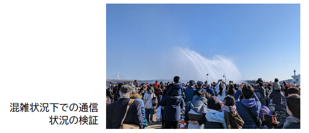 混雑状況下での通信の可用性を検証するため、混雑が発生する大規模イベント(横浜市消防出初式、横浜市成人式)をフィールドに設定し、映像品質の変化、通信速度や通信状況への影響について検証しました。画面のカクつきが大きく、コマ落ちやフリーズをするシーンがありましたが、キャリア毎の違いは大きな差が認められませんでした。