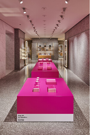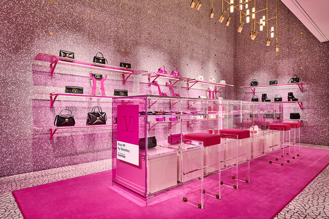 また、ヴァレンティノは、世界各地で特別なポップアップストアやポップインイベントを開催しています。イタリアやフランス、中東、シンガポール、日本を含む世界中の国のヴァレンティノストアで行われるポップインイベントでは、店舗の一角が鮮やかなピンクに染まります。
