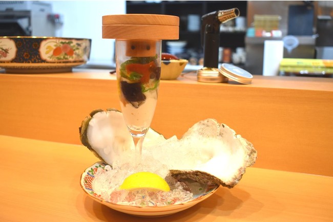 そこでお客様に愛される創作和食居酒屋、食道月様と本燻製器のコラボレーションが実現。お客様に楽しんでいただけるメニューの試作にご協力いただきました。手軽に燻製ができ、燻製器を載せたままテーブルに運ぶことができますので、お客様に口でも、目でも楽しんでいただけるメニューとなりました。