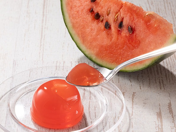 国産すいかピューレと濃縮りんご果汁を使用した、瑞々しくフルーティーな香りが広がるジュレです。