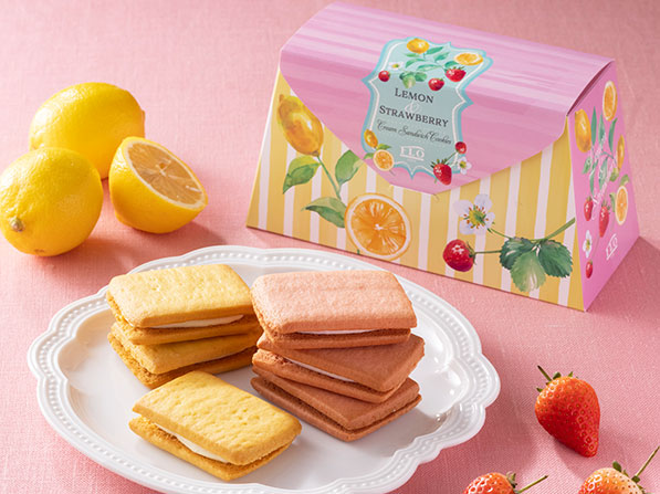 サクサク食感のサブレでたっぷりのクリームをサンドした、爽やかなレモンや苺の香りが楽しめるクッキーです。