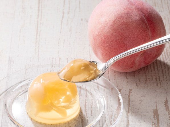 国産白桃の果汁とピューレを使用した、やさしい甘さが広がる華やかな味わいのジュレです。